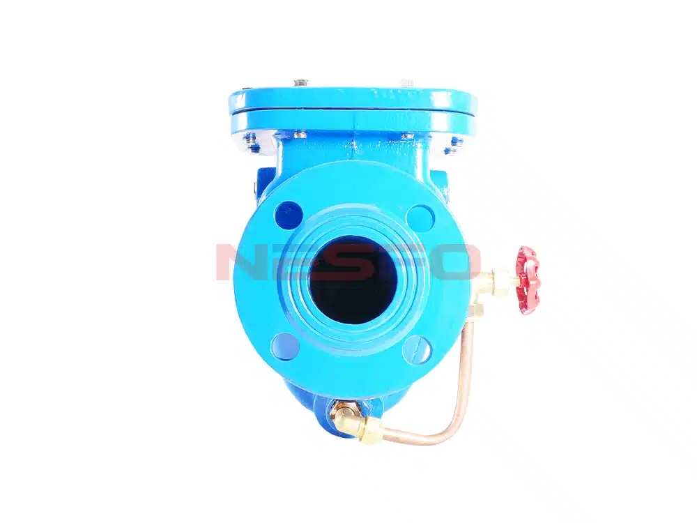 - 阀瓣关闭的后段行程设有阻尼装置,且阻尼时间可调,可防止破坏性水锤的产生。