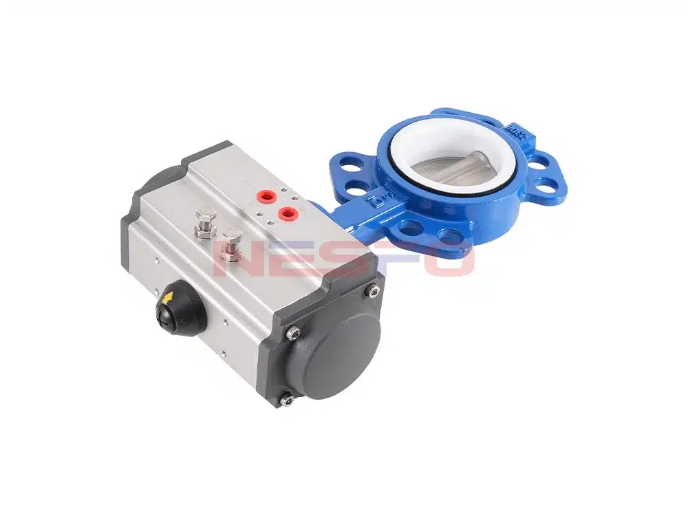 气动对夹蝶阀是管线优先选用的常规蝶阀,具有结构简洁,流阻系数小,流量特性趋于直线,不会滞留杂物。且重量轻,安装方便,驱动扭矩较小的优点。气动蝶阀既可作切断介质用,又可作调节介质的流量用。被广泛应用于排水、污水、食品、供暖、燃气、船舶、水电、冶金、能源系统以及轻纺等行业。