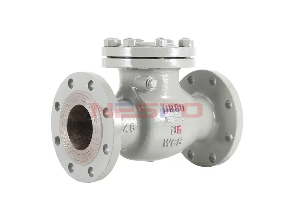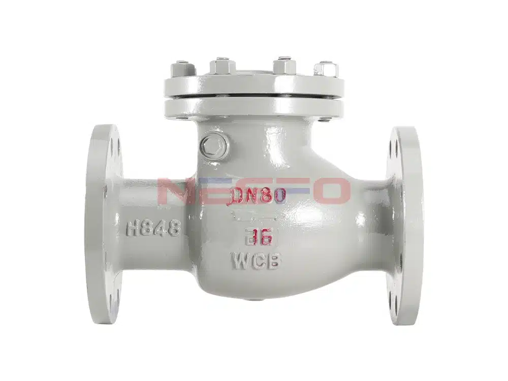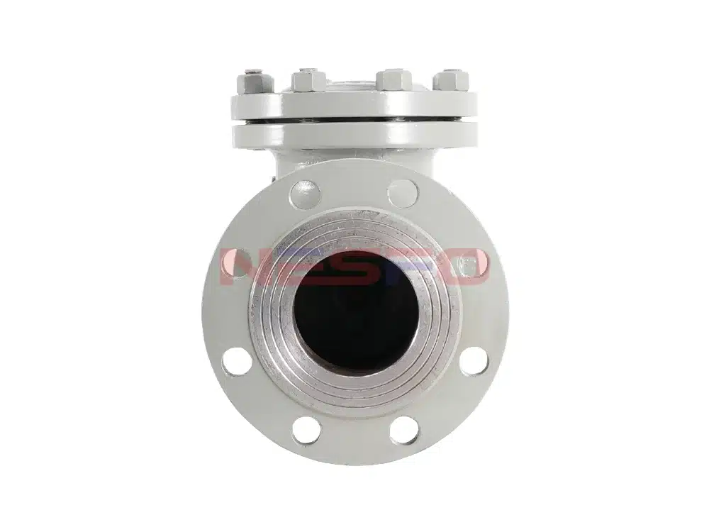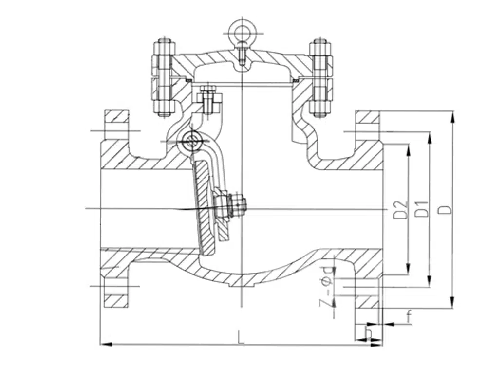A válvula de retenção rotativa H44H adota uma estrutura rotativa de balancim interno, a aba da válvula gira em torno do eixo rotativo, a aba da válvula se abre sob a ação da pressão do fluido e o fluido flui do lado da entrada para o lado da saída. Quando a pressão do lado da entrada é menor do que a do lado da saída, a aba da válvula se fecha automaticamente sob a ação da diferença de pressão do fluido, da gravidade e de outros fatores para evitar o refluxo de fluidos.