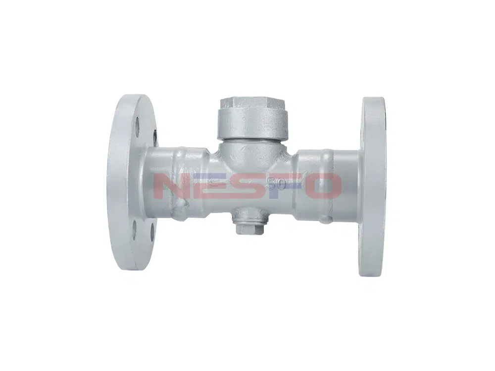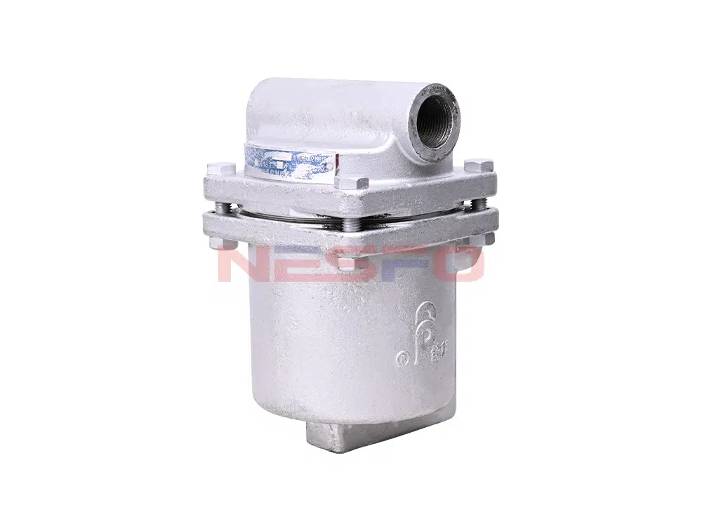 当阀内无凝结水时,浮球靠自重作用及系统内汽体压力,严密关闭阀口。当凝结水位升到一定高度时,浮球在液体的浮力作用下,定向上浮,打开阀门,凝结水排出。当水位降至一定位置时,通过汽体作用力及浮球自重,迅速关闭阀门,并在阀底保留一定量的存水,起到水封作用。