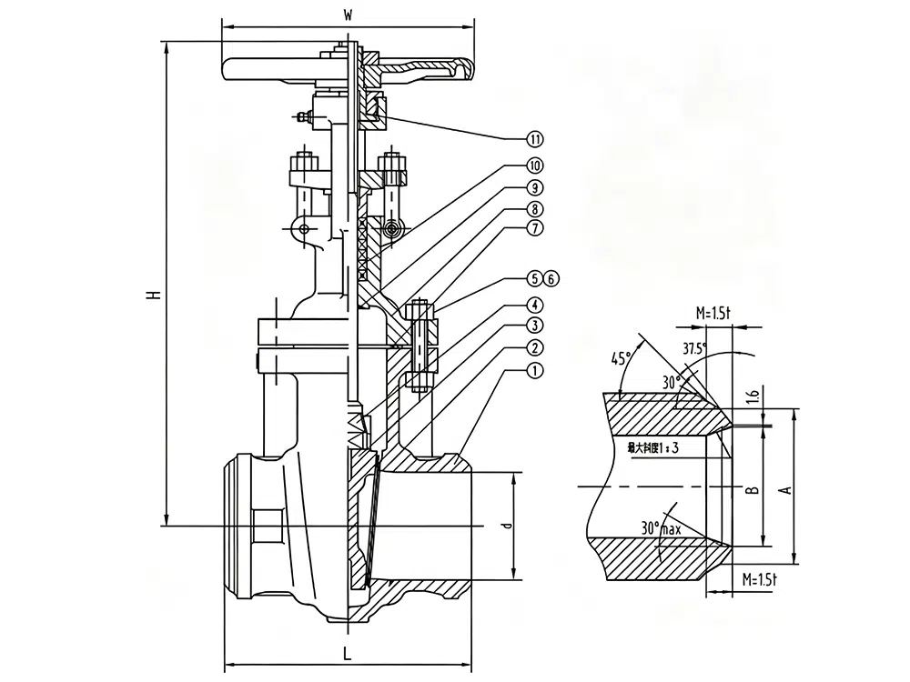 - 结构形式为弹性楔式单闸板、刚性楔式单闸板双闸板型式。
