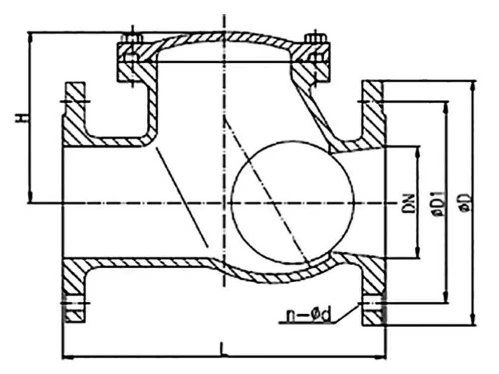 球型止回阀的阀瓣是包覆橡胶或工程塑料的球体,因此其密封可靠。球型止回阀公称通径的大小,有单球和多球之分,其密封原理是:当开泵时,介质正向流动产生的介质压力推动球体运动,沿导柱离开阀座密封面,止回阀便开启,介质通过,当停泵时,介质反向流动的压力推动球体沿导柱滚动到阀座密封面,关闭止回阀,靠工作介质的压力,使球体阀瓣和阀座密封面间产生一定的密封比压,保证止回阀的密封,达到阻止介质逆流的目的。