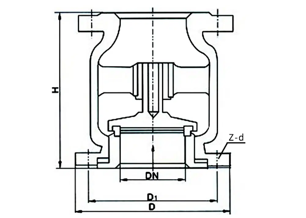 H42H сериялы тігінен орнатылатын тексеру клапаны медианың кері ағынын болдырмайды және кері ағынынан қорғау құралы ретінде қызмет етеді. H42H құйма болаттан жасалған тік тексеру клапаны кіріс ортасының қысымы шығыс қысымынан асқанда ашық күйде қалады. Құбыр ішіндегі кіріс ортасының қысымының әсерінен клапан дискісі көтеріліп, клапан автоматты түрде ашылады. Кіріс қысымы шығыс қысымынан төмендегенде серіппе дискіні отырғызу орынына итеріп, клапанды жабады.