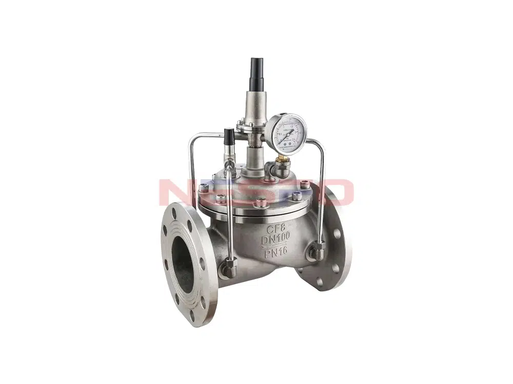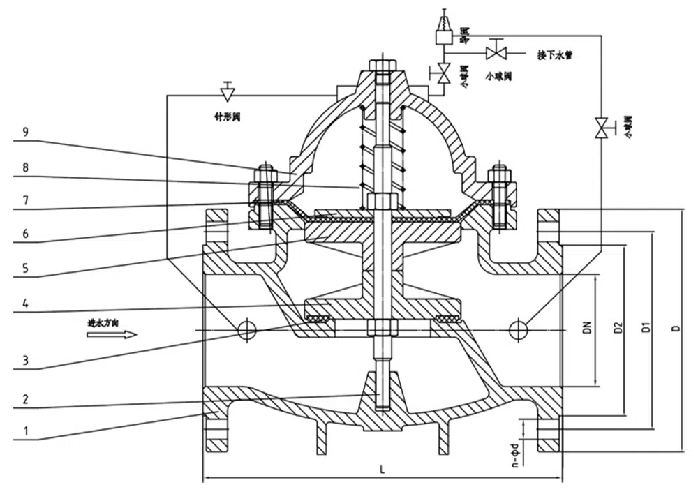 500X持压泄压阀用于消防或其他供水系统中,以防止系统超压或维持消防供水系统的压力,消防泵关闭后还可以减小水锤的冲击,也用于大型供水系统的水锤装置。500X持压泄压阀由主阀、泄压、持压导阀针阀、球阀、微形过滤器和压力表组成水力控制接管系统。利用水力自动操作,即可以作泄压阀用又可作持压阀用。作泄压阀用时,可维持供水路压力在设定的安全值之下;做持压阀用,可维持主阀上游水压在设定值之上,保持主阀上游供水压力;本产品利用水力自力控制,不需要其它装置和能源,保养简便,一阀多用;本系列阀门产品广泛用于高层建筑、生活区等供水管网系统及城市供水工程。