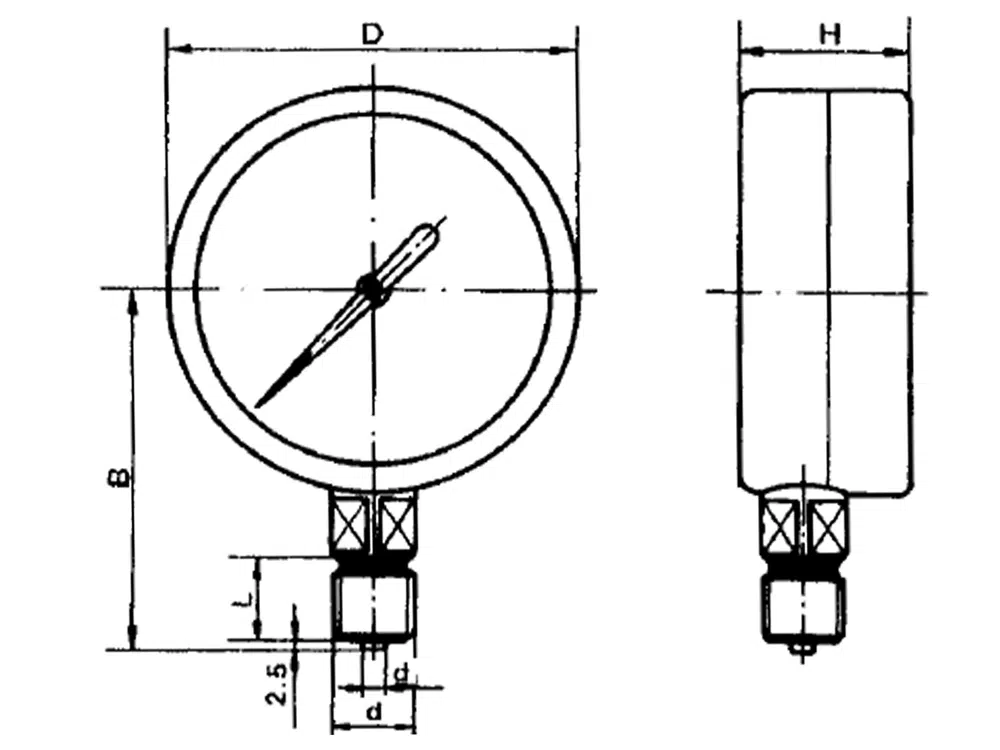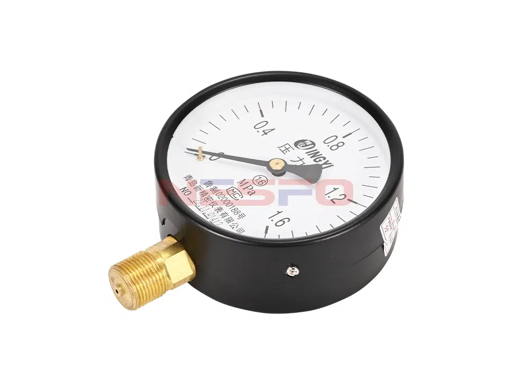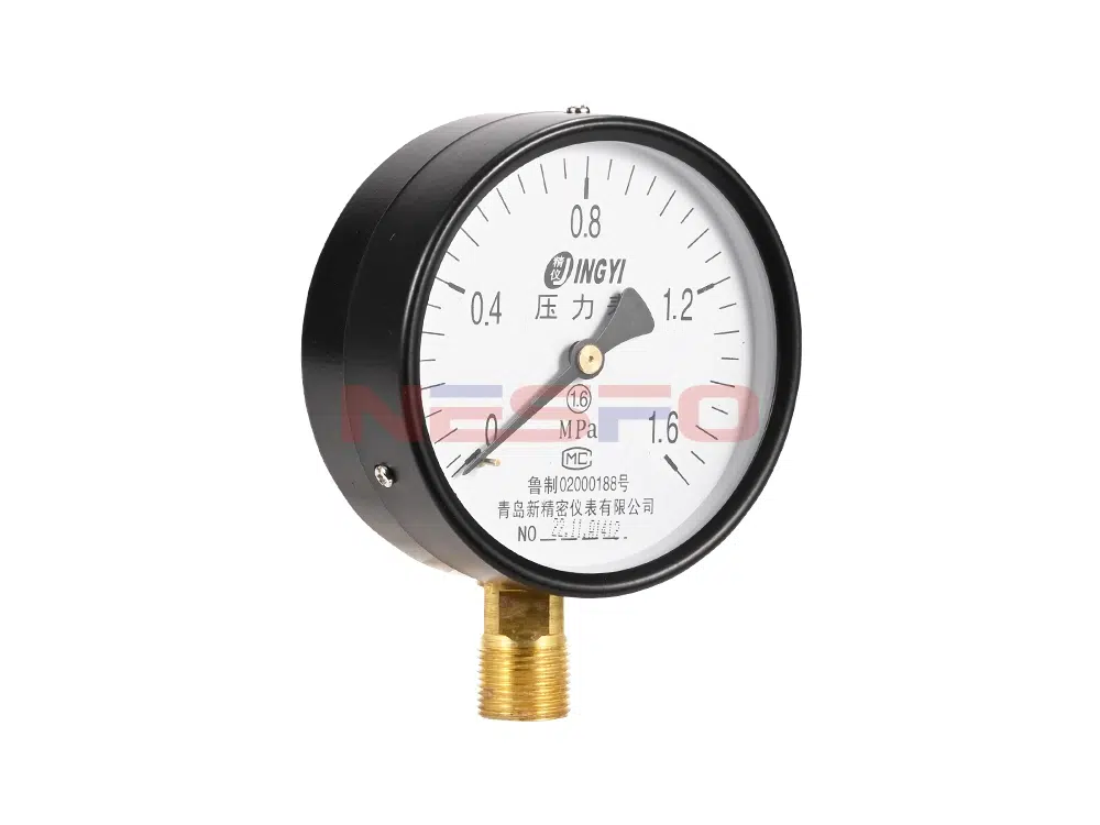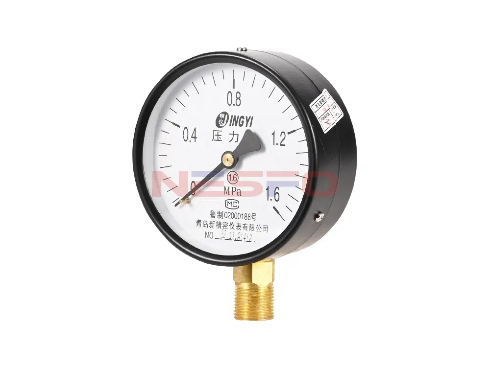 - Y100表示表盘直径100mm的径向型普通压力表。