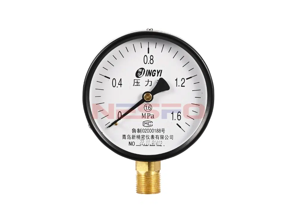 Y100普通压力表(0-1.6MPa径向型)适用于测量无爆炸危险、不结晶、不凝固及对钢、铜合金不起腐蚀作用的液体、蒸汽和气体等介质的压力。