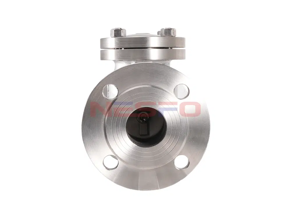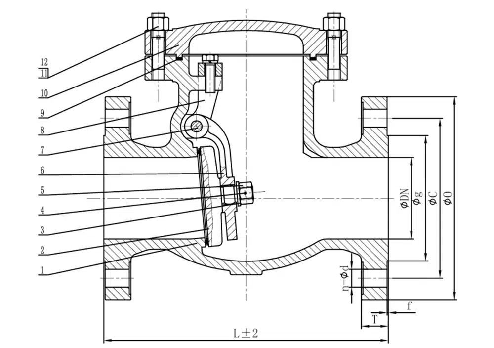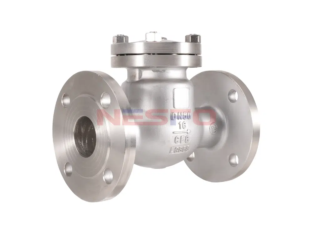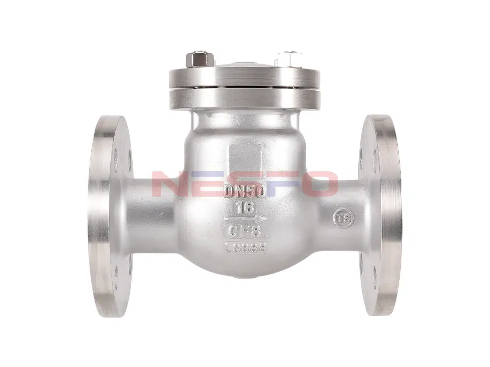 Поворотный обратный клапан H44W имеет внутреннюю поворотную структуру, заслонка клапана вращается вокруг поворотной оси, заслонка клапана открывается под действием давления жидкости, и жидкость течет от входной стороны к выходной стороне. Когда давление на входе ниже, чем на выходе, заслонка клапана автоматически закрывается под действием разницы давления жидкости, силы тяжести и других факторов для предотвращения обратного потока жидкости.