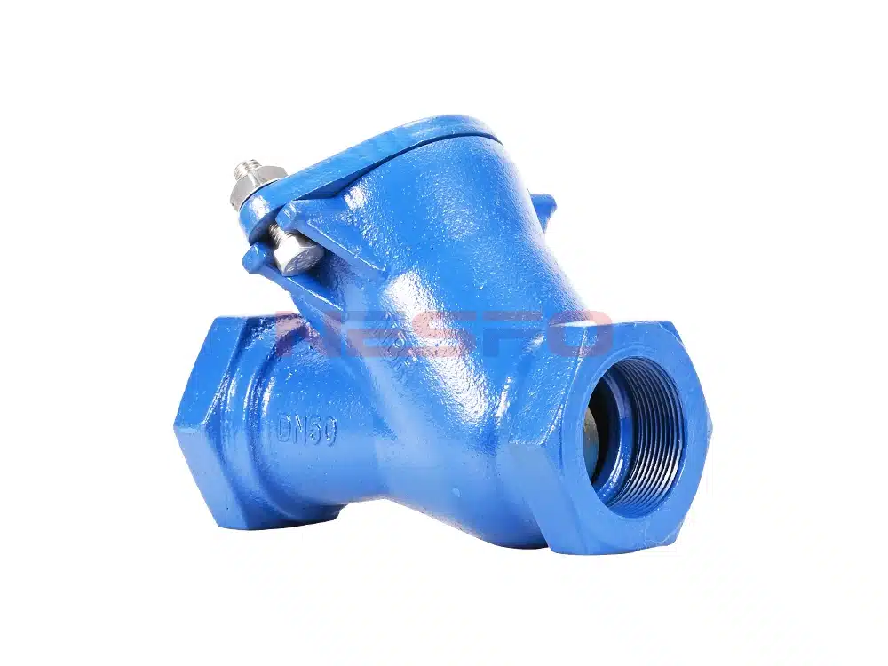 HQ11X丝扣球形止回阀又叫滚球式止回阀,内螺纹连接,Y型结构,内部密封件的橡胶球耐磨耐油,压力PN10~PN25,通径DN25~DN80。采用橡胶皮滚动球为阀瓣,在介质的作用下,可在阀体的整体式滑道上作上下滚动,从而打开或关闭阀门。具有密封性能好,消声式关闭,不产生水锤等特点。阀体采用全水流通道,流量大,阻力小,水头损失比旋启式小50%,水平安装或垂直安装均可。可用于冷水、热水、工业及生活污水管网,更适合潜水排污泵,介质温度0~80℃。