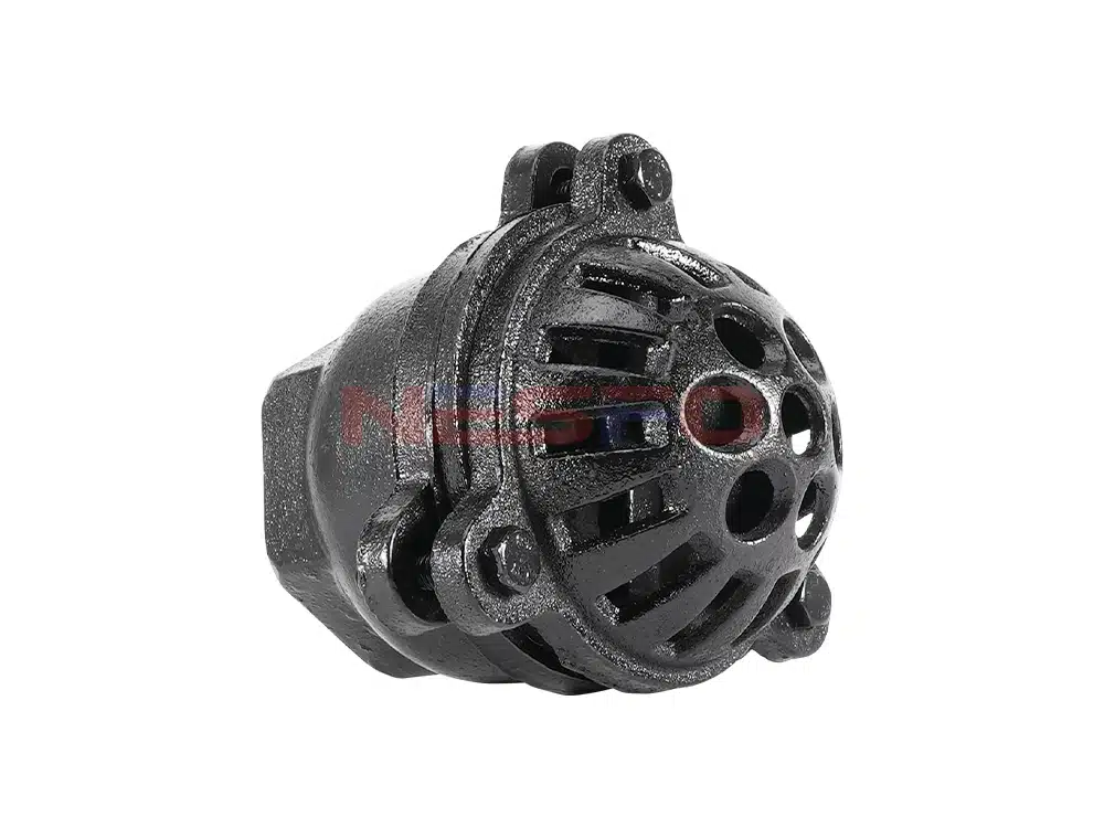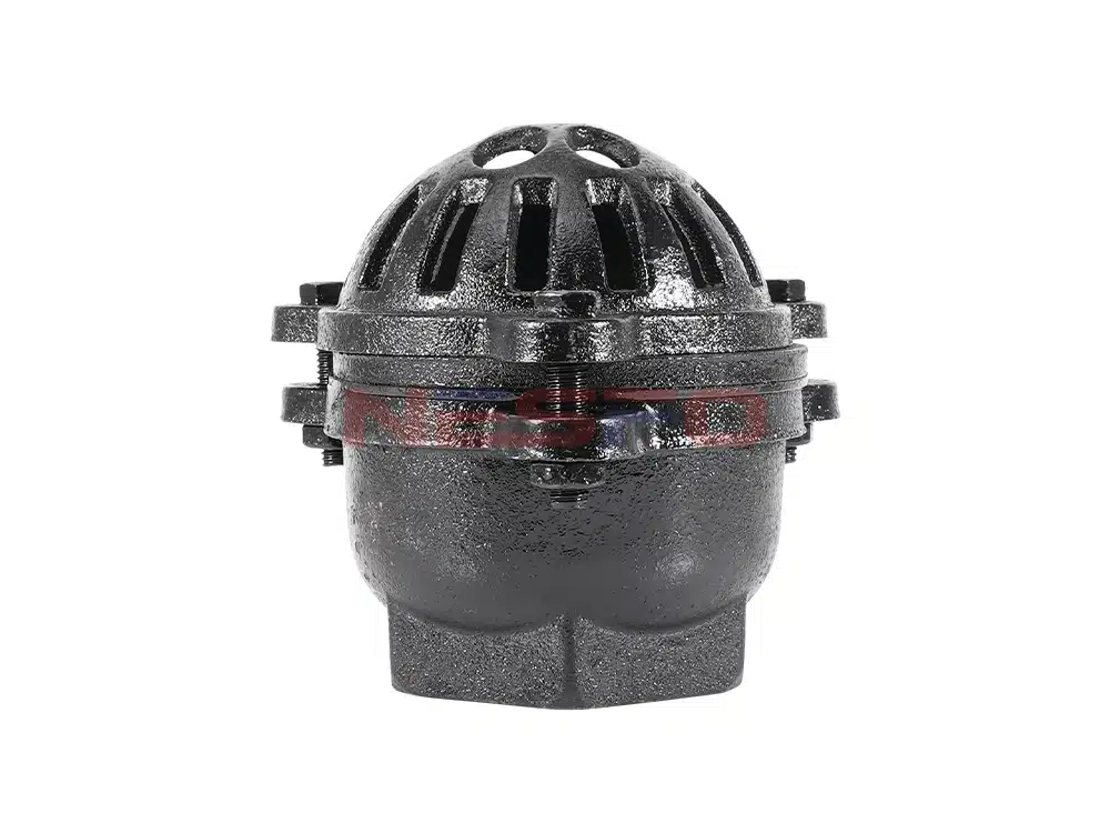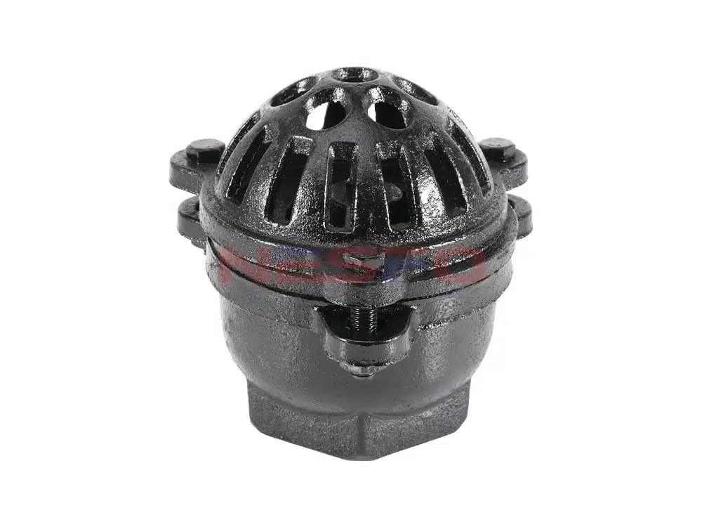 铸铁丝扣底阀又叫水泵底阀,是一种节约能源的阀门,一般安装在水泵水下吸管的底端限制水泵管内液体返回水源,起着只进不出的功能。阀盖有很多个进水口和加强筋起到了不易堵塞,主要的作用是安装在水泵底部防止水的倒流。