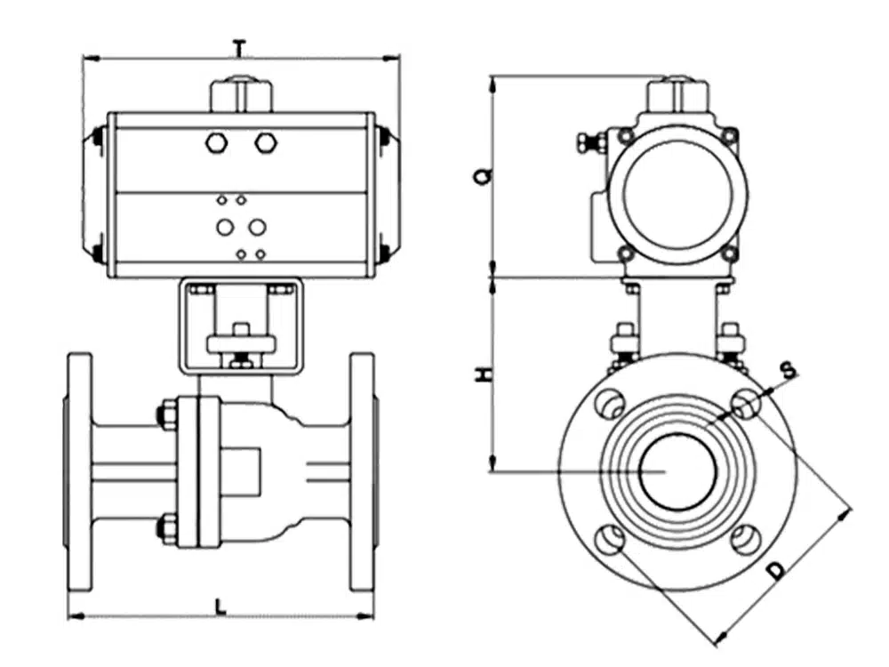 วาล์วบอลแบบหน้าแปลนนิวแมติกประกอบด้วยตัววาล์วบอลแบบหน้าแปลนที่รวมกับตัวขับเคลื่อนนิวแมติก AT เมื่อติดตั้งกับอุปกรณ์เสริมนิวแมติก จะช่วยให้สามารถควบคุมได้อย่างชาญฉลาด ช่วยให้เปิดหรือปิดท่อได้อย่างรวดเร็ว ซึ่งช่วยให้ควบคุมและจัดการเครือข่ายท่อได้อย่างมีประสิทธิภาพจากระยะไกลชุดวาล์วลูกบอลนิวเมติกนี้มีความต้านทานของของไหลต่ำ โครงสร้างเรียบง่าย ขนาดกะทัดรัด น้ำหนักเบา ซีลแน่นหนาและเชื่อถือได้ ใช้งานง่าย เปิด/ปิดได้อย่างรวดเร็ว และบำรุงรักษาได้ง่าย เหมาะสำหรับการแยกหรือเชื่อมต่อสื่อภายในท่อ นอกจากนี้ยังเหมาะสำหรับการควบคุมและปรับปริมาณของของไหล ใช้ได้กับสื่อหลากหลายประเภท รวมถึงน้ำ ไอน้ำ น้ำมัน และสารที่มีความเป็นกรด/ด่าง