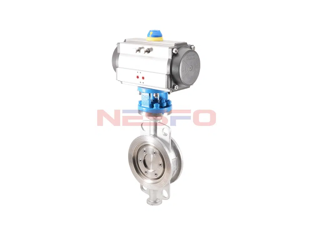 D673H/W型气动三偏心硬密封蝶阀由气动执行器和三偏心硬密封蝶阀组成。气动三偏心硬密封蝶阀具有双向密封功能,开启力矩小,灵活方便,省力节能;三维偏心结构,使蝶板越关越紧,其密封性能可靠,达到无泄漏;在阀板启闭时与阀座基本没有摩擦,减少了阀座密封面磨损,提高了蝶阀的使用寿命。阀座密封圈采用金属硬密封结构,耐温比软密封蝶阀高很多,可用于高温介质。气动执行器驱动蝶阀开关迅速,可用于快速切断。配有电磁阀,行程开关附件,方便远程控制。需要比例调节控制时要配装电气阀门定位器。