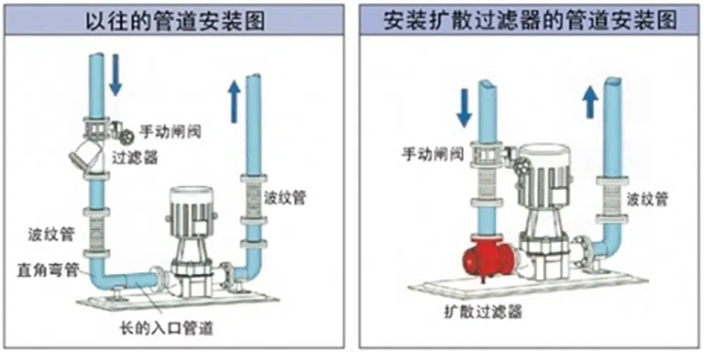 - Difüzyon filtresi doğrudan pompanın girişine monte edilir, pompa için dengeli bir su akışı sağlayabilen ve su akışını dengeleme, pompanın verimliliğini artırma ve pompanın ömrünü uzatma işlevi ile pompanın kanatlarını koruyabilen akış kılavuzu rolünü oynar.
