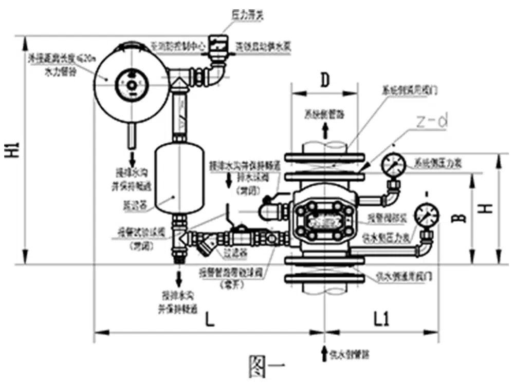 (1) Islak Alarm Vanası: Suyun sprinkler sistemine sadece bir yönde akmasına izin verir ve belirli bir akış hızında alarm verir.