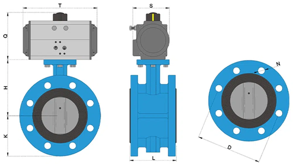 D641F-16Q气动法兰四氟蝶阀性能可靠、配套简单、流通能力大,特别适合于介质是粘稠、含颗粒、纤维性质的场合。适用于温度≤150℃,如轻纺、造纸、食品、医药、化工、石油、电力、给排水、气体等管道上作调节流量和截流介质的作用。