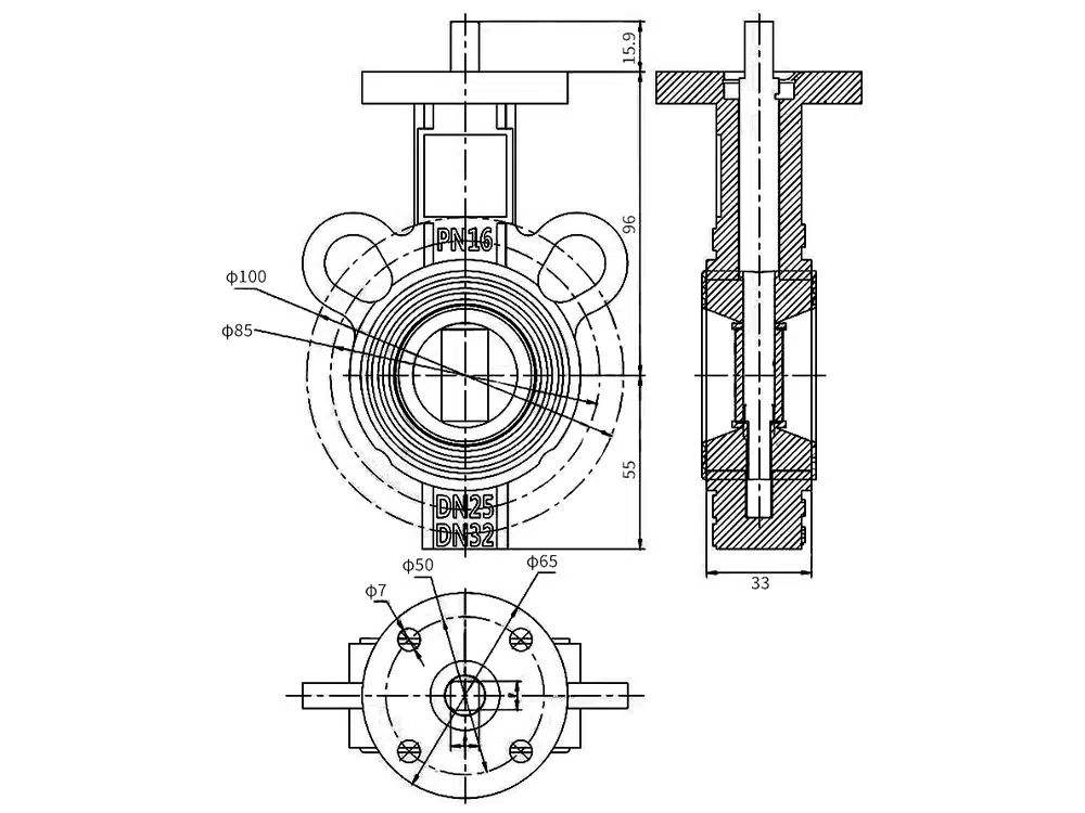 D71X-16Q kelebek vanayı klipslemek için tutamak, ortam akışını açmak ve kapatmak veya düzenlemek için gıda, ilaç, kimyasal ve diğer net boru hattı ve endüstriyel çevre koruma, su arıtma, yüksek binalar, su temini ve drenaj boru hatlarına uygulanabilir. Kelebek vana kelebek plakasını klipslemek için tutamak, boru hattının çapı yönünde monte edilir. Kelebek vana gövdesinin silindirik kanalında, disk şeklindeki kelebek plaka eksen etrafında döner, 0 ° ~ 90 ° arasındaki dönüş açısı, 90 ° 'ye döndürülür, vana tamamen açıktır.