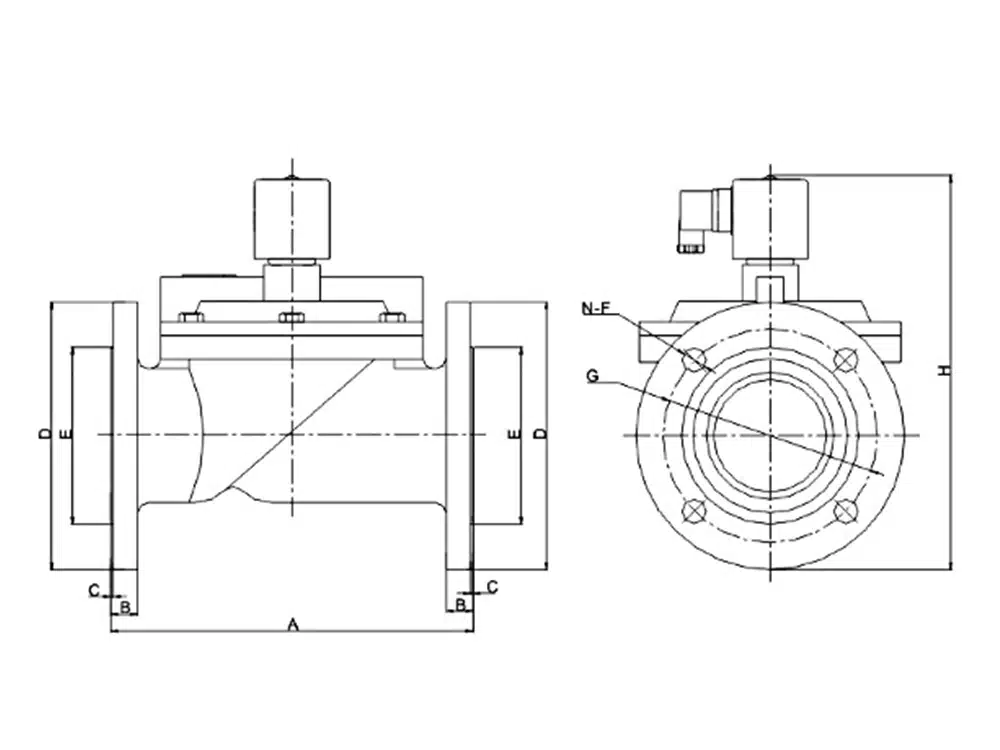 型号 | 通径 | A | B | C | D | E | N-F | G | H |